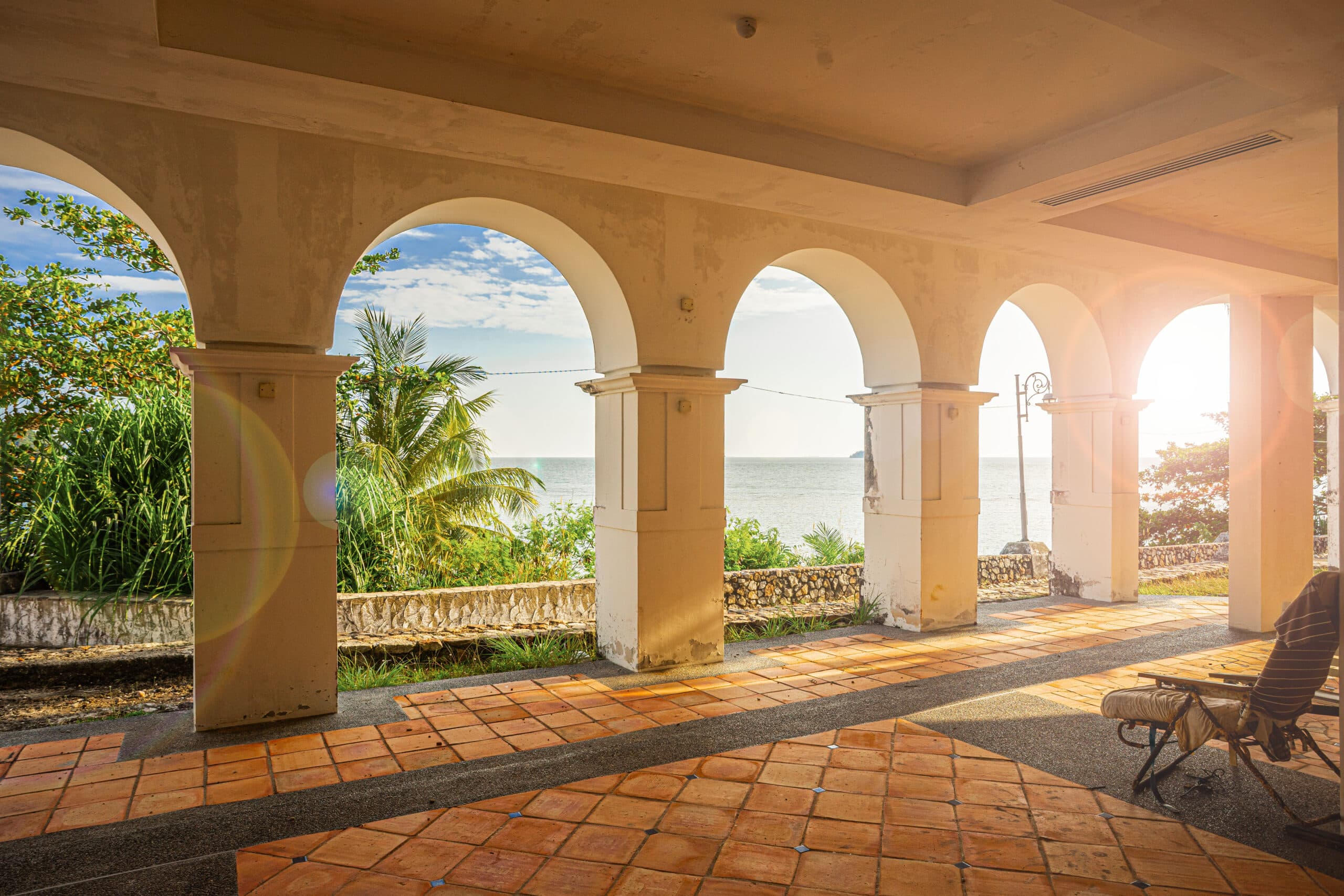 Durch die verwitterten Bögen eines verlassenen Resorts eröffnet sich der Blick auf das endlose Meer Malaysias. Der Sonnenuntergang taucht Mauern und Fliesen in goldenes Licht, das sich sanft auf der Wasseroberfläche spiegelt. Zwischen Palmen und überwuchernden Wegen zeigt sich ein Ort, an dem Stille und Vergänglichkeit zu einer harmonischen Einheit verschmelzen.