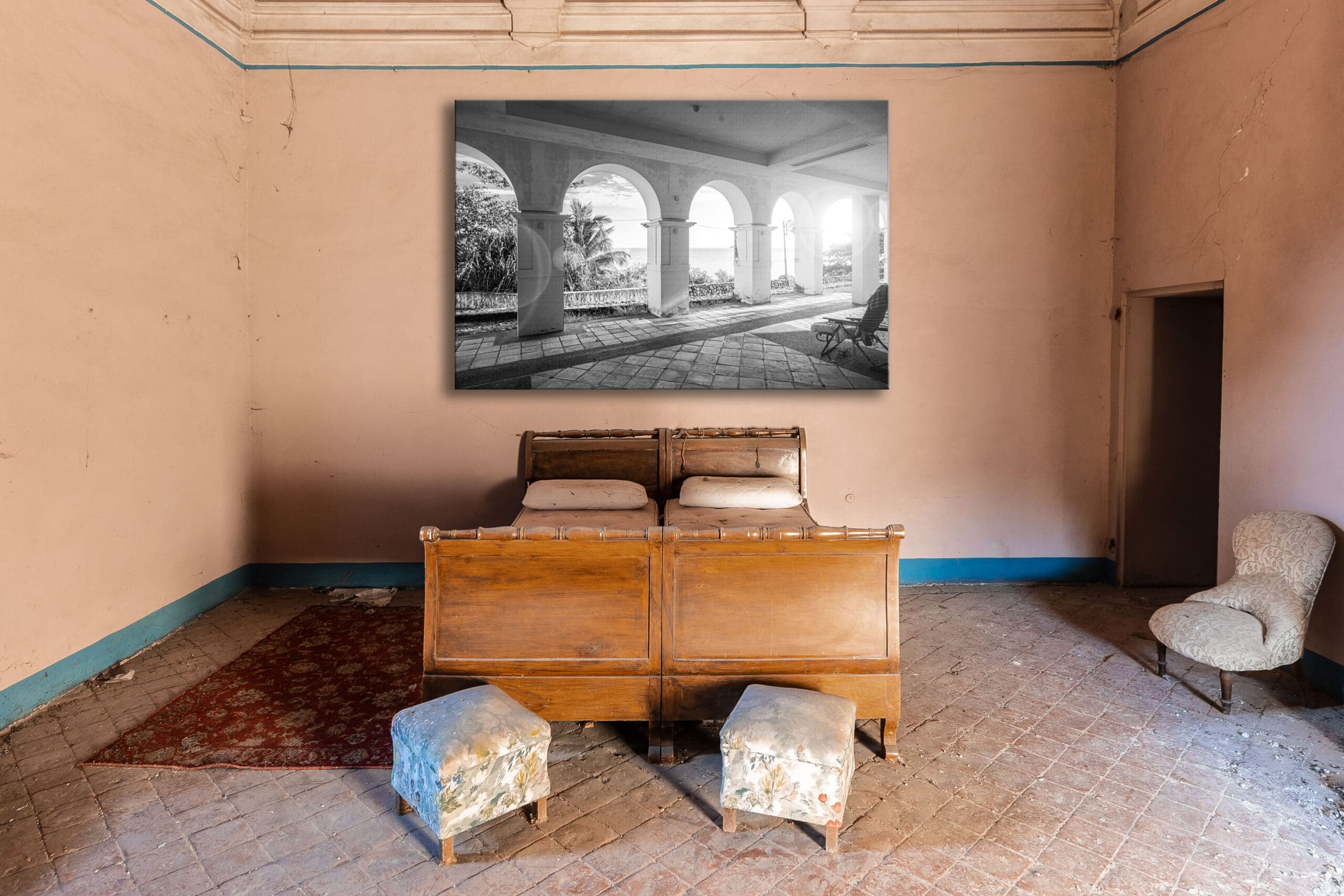 Die Aufnahme entstand auf einer kleinen, nur per Boot erreichbaren Insel vor der Westküste Malaysias. Über Jahrhunderte diente sie Fischern als sicherer Rückzugsort, später wurde sie zu einem Zwischenstopp für Handelsschiffe während der Kolonialzeit. In den späten Jahrzehnten des 20. Jahrhunderts versuchte man, mit einem Resort Reisende anzuziehen, die Abgeschiedenheit und unberührte Natur suchten. Doch das tropische Klima und wirtschaftliche Rückschläge ließen das Projekt scheitern – die Gebäude verfielen, die Natur nahm ihren Raum zurück.