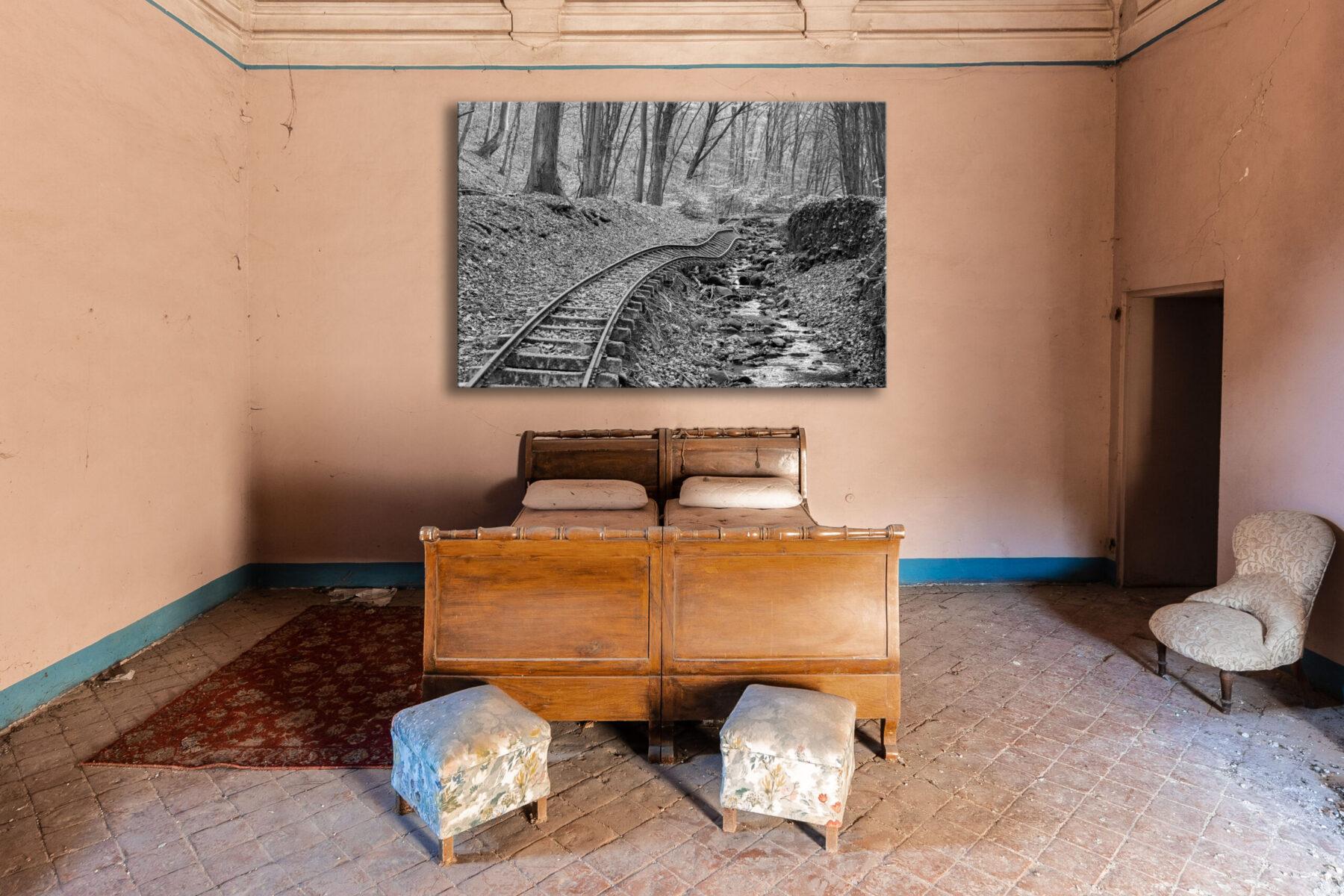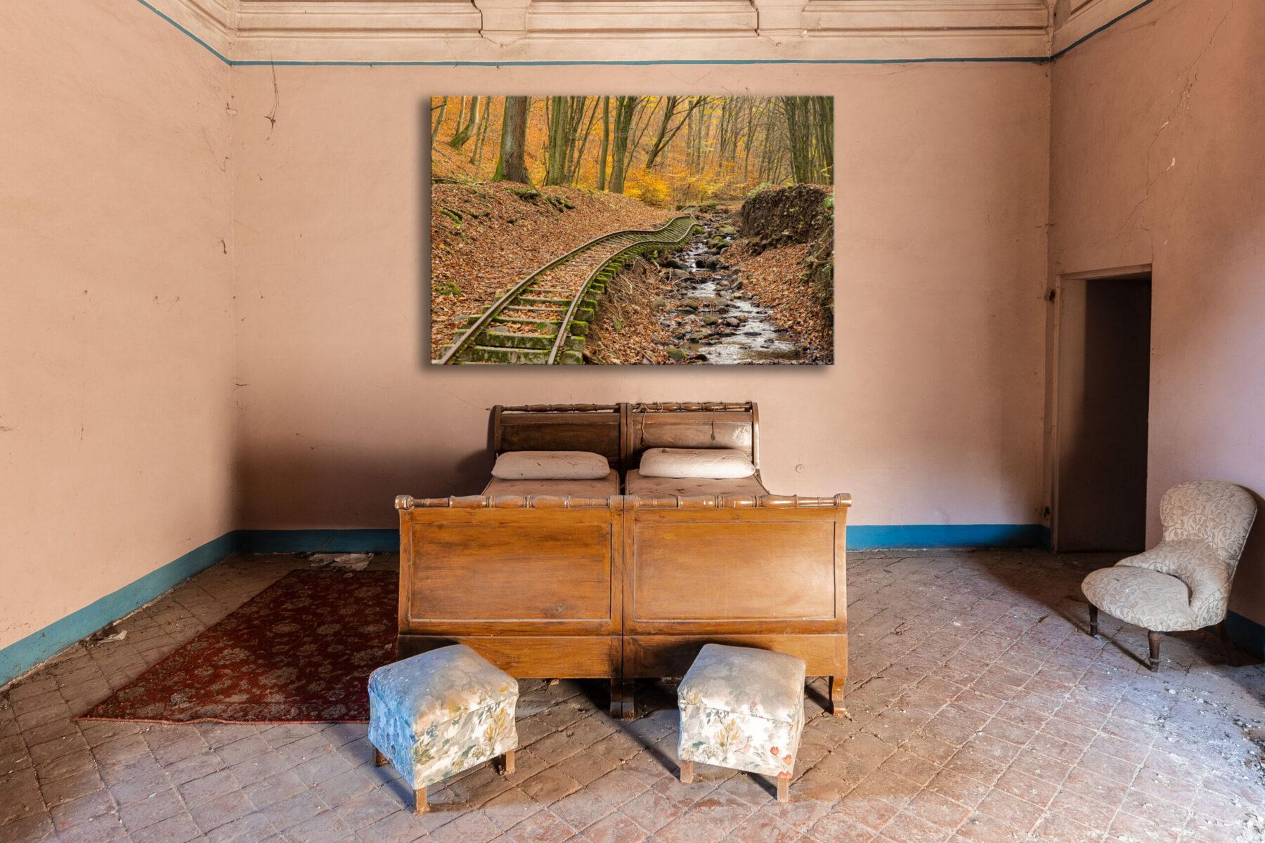 Heute hat die Natur das Regiment übernommen. Stürme und Überschwemmungen unterspülten 1995 und 1999 Teile der Trasse und rissen Lücken in das einstige Netz aus Stahl, wodurch diese Linie zu einem stillen Denkmal vergangener Industriekultur wurde. Entlang der ehemaligen Bahn verläuft mittlerweile ein rund 15 Kilometer langer, gut ausgeschilderter Wanderpfad, auf dem sich verlassene und restaurierte Abschnitte abwechseln. Teile der Strecke wurden durch die Museumsbahn Kemence wieder in Betrieb genommen und sind von Frühling bis Herbst an Sonn- und Feiertagen für touristische Fahrten geöffnet. Ein idealer Ausgangspunkt, um dieses vergessene Kapitel ungarischer Eisenbahngeschichte zu erkunden, ist das Hotel und Restaurant Feketevölgy Panzió, das genau zwischen dem genutzten und dem verlassenen Streckenabschnitt liegt – dort, wo unsere Aufnahme die leise Begegnung von Vergangenheit und Gegenwart festhält.